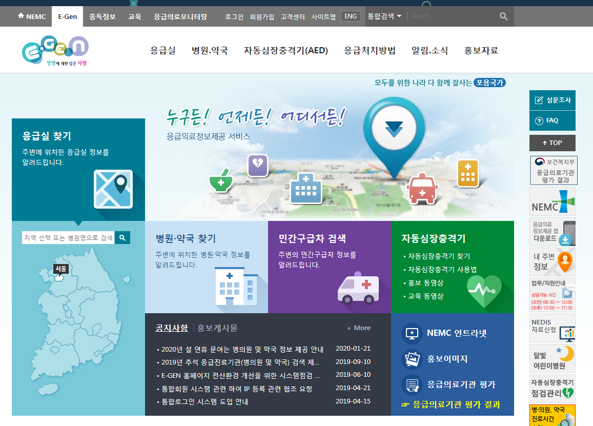 혹시라도 아이 키우닫가 응급처치가 필요하거나 밤 시간에 병원 방문을 해야 한다면 응급의료정보센터(응급의료포털E-Gen) 홈페이지나 앱을 활용하시면 좋을 것 같습니다. 자세한 내용은 아래를 참고하세요.